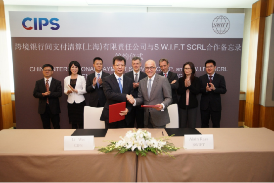 2016年3月25日,SWIFT与CIPS运营机构合作备忘录签约仪式在北京举行。CIPS运营机构执行董事李伟、总经理张欣,SWIFT亚太欧非区行政总裁Alain Raes、亚太区市场部总裁Philippe DIRCKX、中国区总裁黄美伦等出席签约仪式,中国支付清算协会副秘书长亢林应邀莅临签约仪式。