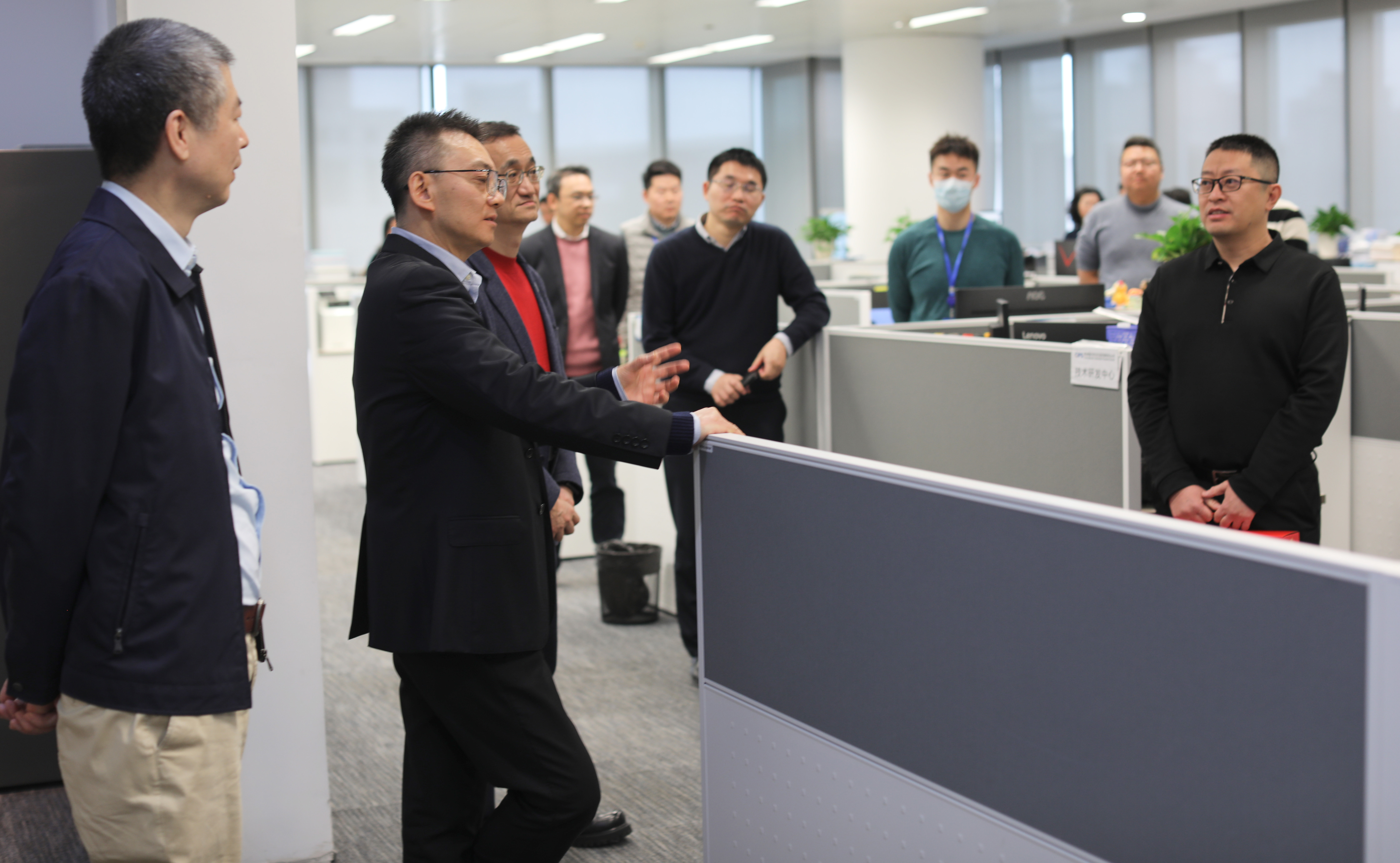 2025年1月26日,在蛇年新春佳节即将到来之际,跨境清算公司党委书记、董事长汪洪波,党委副书记、总裁许再越,党委委员、副总裁邬向阳深入走访各部门,查看业务运行和生产保障情况,慰问看望在岗干部职工,为他们送去节日问候和新春祝福。