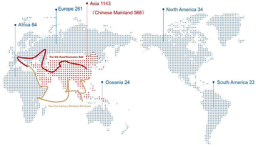 Among Indirect Participants, 1143 participants are from Asia (including 566 from Chinese Mainland), 261 from Europe, 64 from Africa, 34 from North America, 33 from South America, and 24 from Oceania. CIPS participants are located in 122 countries and regions around the world. Business covers more than 5000 banking institutions in 190 countries and regions around the world.