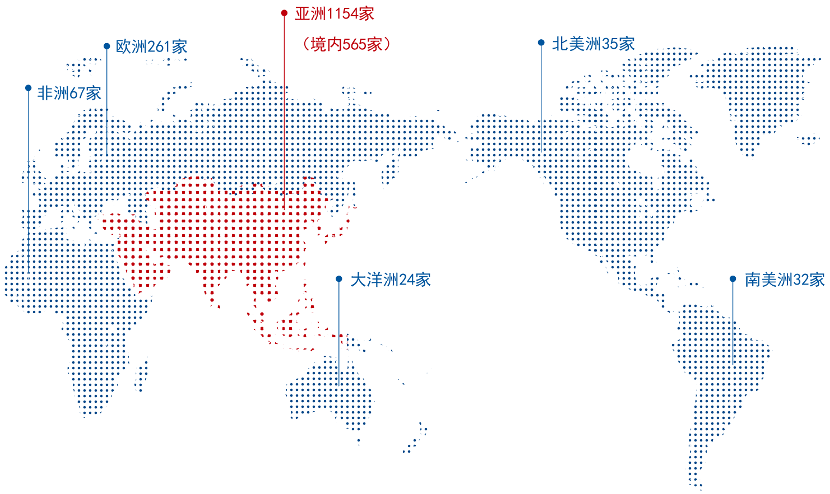 间接参与者中,亚洲1154家(境内565家),欧洲261家,非洲67家,北美洲35家,南美洲32家,大洋洲24家。CIPS系统参与者分布在全球124个国家和地区,业务可通过5000多家法人银行机构覆盖全球190个国家和地区。